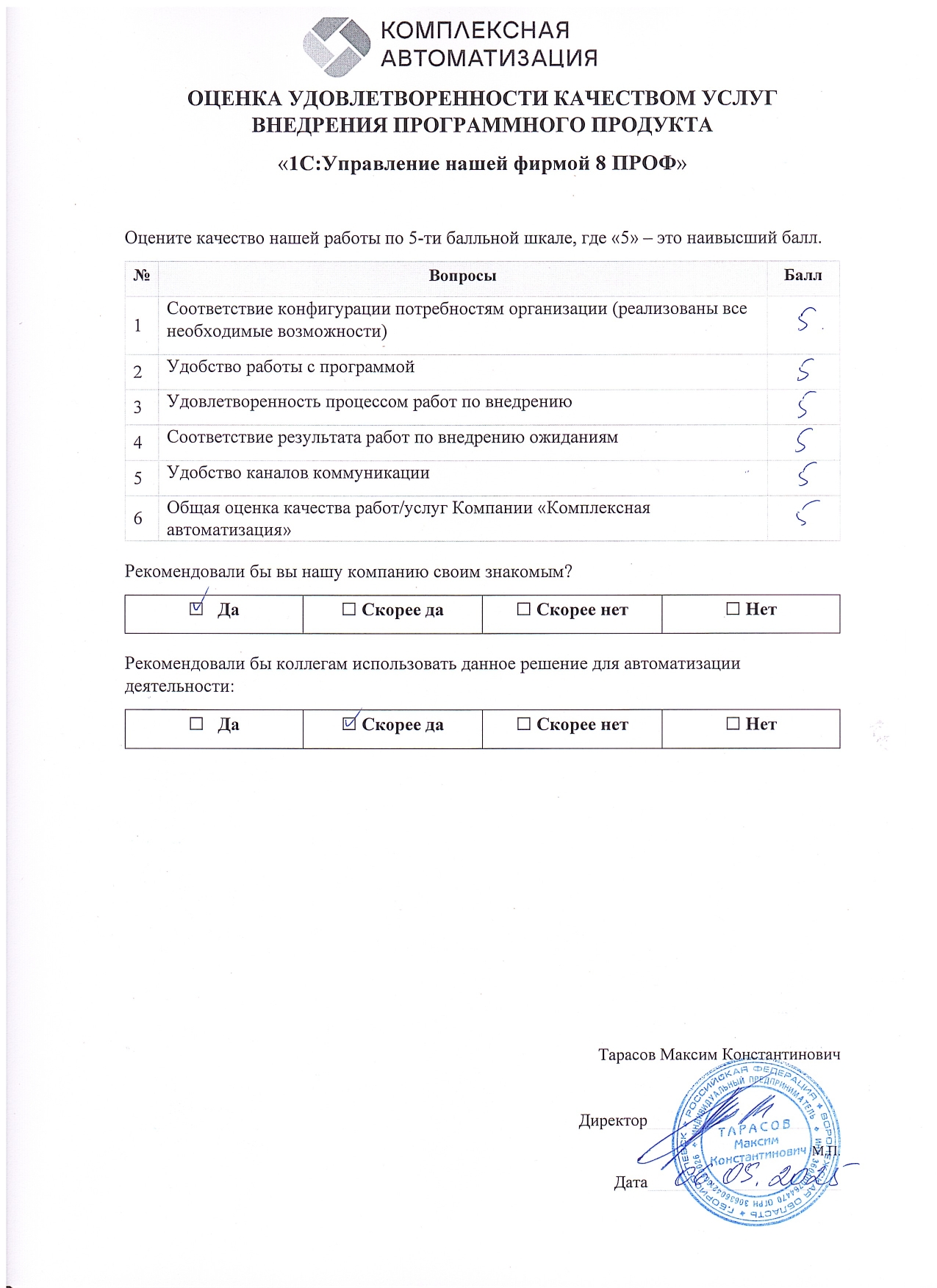 Автоматизация деятельности у ИП Тарасова М. К. на базе «1С:Управление нашей фирмой 8 ПРОФ»-